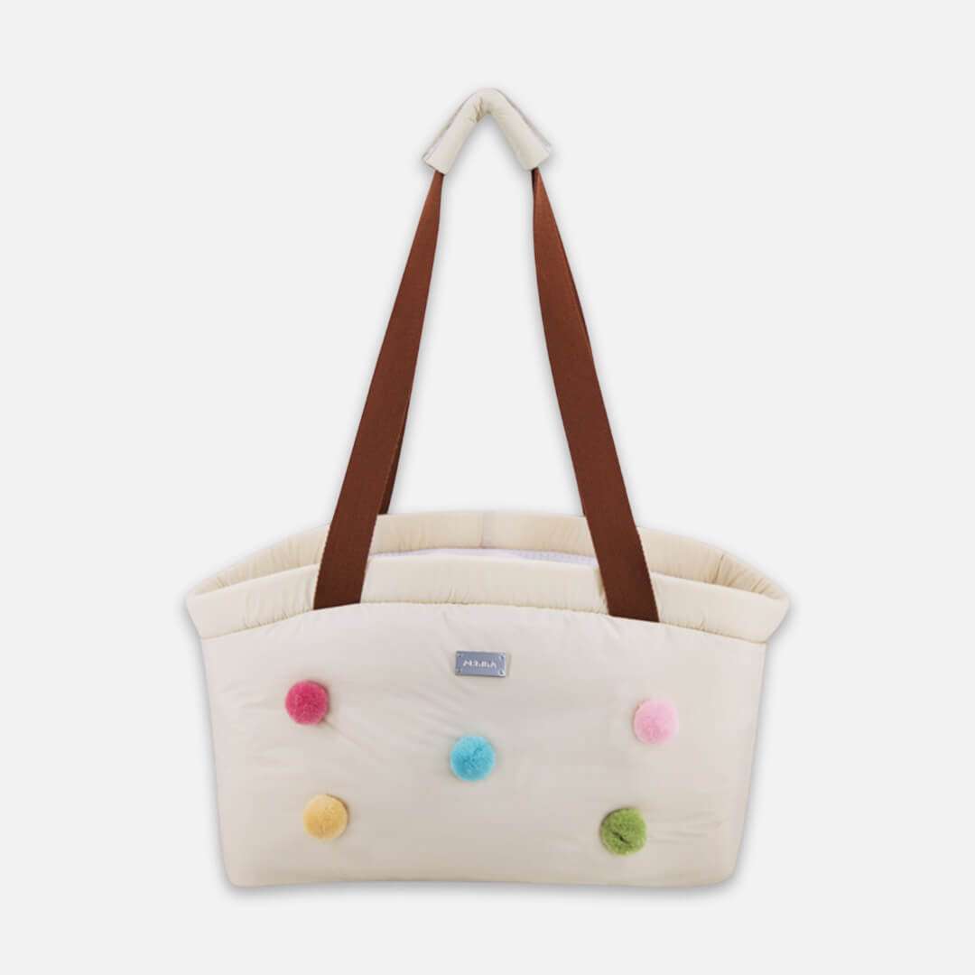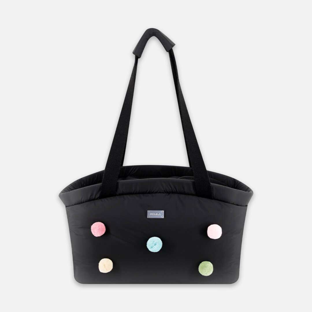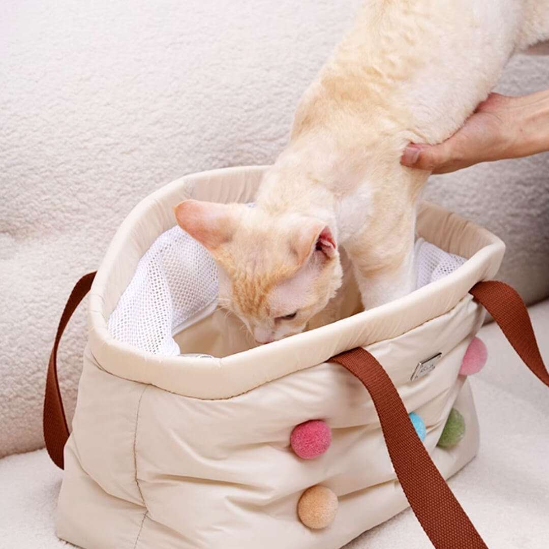 This colorful, lightweight shoulder bag is ideal for kitty trips because of its stylish appearance and amusing pom-poms. Your curious cat can easily jump in and out thanks to its top-loading design, and its daring paws are kept safe with a safety tether. It has broad, padded straps for comfortable carrying and is made of soft, breathable fabric to keep your pet cool.