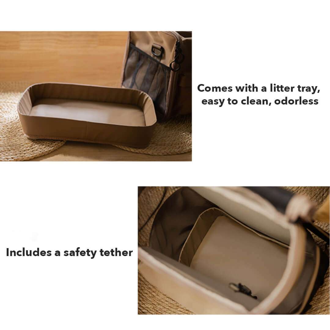 Crafted from durable, water-resistant oxford fabric, this cat backpack is purrfect for outdoor adventures with your feline friend. Its earthy tones of olive green and camel brown blend seamlessly with nature, making it a stylish yet functional choice.