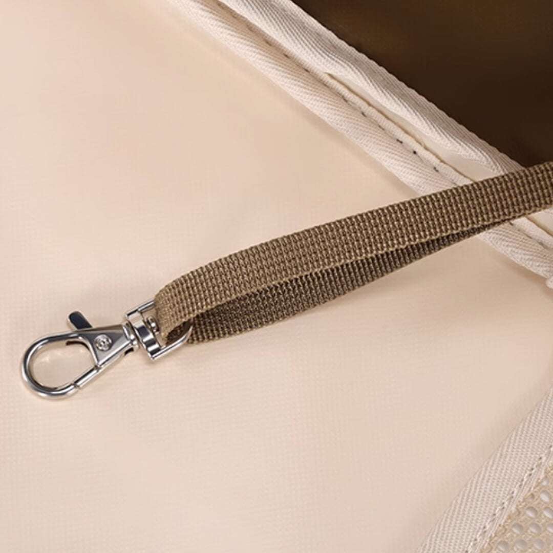 A built-in safety leash keeps curious escape artists secure, while 3-sided breathable mesh panels provide ample airflow and let your cat peek at the world outside. Roomy enough for lazy lounging or playful spins, yet cozy enough to feel like a safe, snug hideaway.